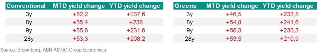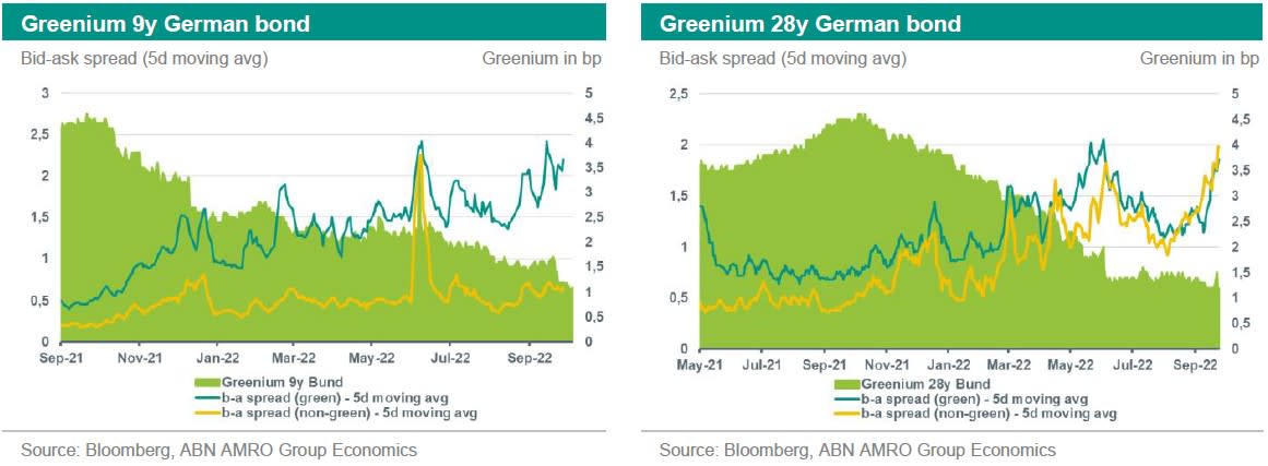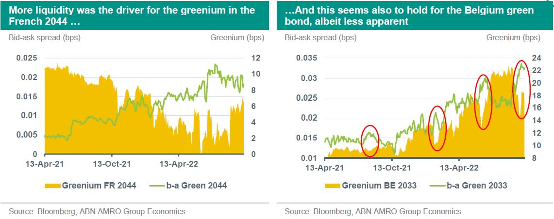 However, we see some exceptions to this, such as with the German 2025 and the Belgium 2033 green bonds