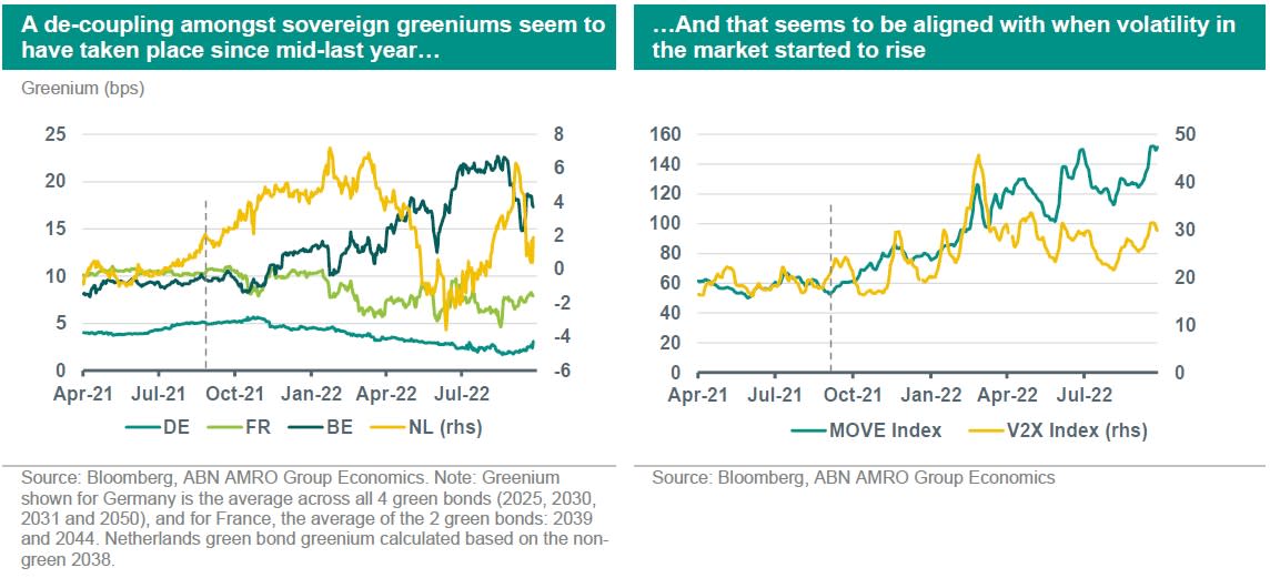 We show that market volatility has driven a “de-coupling” amongst sovereign greeniums, which have decreased in almost all cases