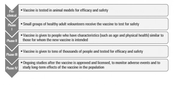 With regards to how vaccine development looks in practice, the typical vaccine development process begins with companies testing potential vaccine candidates in animal models (typically rats and non-human primates) to see if a vaccine can induce an immune response. Safety is also tested to see if no adverse effects occur upon inoculation. Vaccine candidates who are successful can move on to clinical or human trials, where they begin Phase 1, which involves a small group of healthy adult volunteers (typically in ages 18-35) who receive the vaccine to test for dosing and safety.