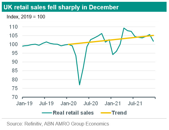 This profile stands in contrast to that currently priced in by financial markets – with now 5 rate hikes priced in for this year – and it also differs substantially to our expectation for the US Fed. Why is this? While the UK economy faces many of the same bottlenecks as the US (as well as some of its own unique Brexit-related ones), and has a similarly tight labour market, we think there are some crucial differences with the situation in the US. First, we are not seeing the same kind of significant excess demand in the UK as we have seen in the US; in fact, retail sales fell sharply in December and are now well below the pre-pandemic trend, whereas in the US they are still above trend following a prolonged period of excess goods consumption. As such, the inflation we are seeing in the UK is still almost entirely a supply-side (and mainly energy and goods) story, whereas in the US there is a significant demand component given the excess consumption we have seen.