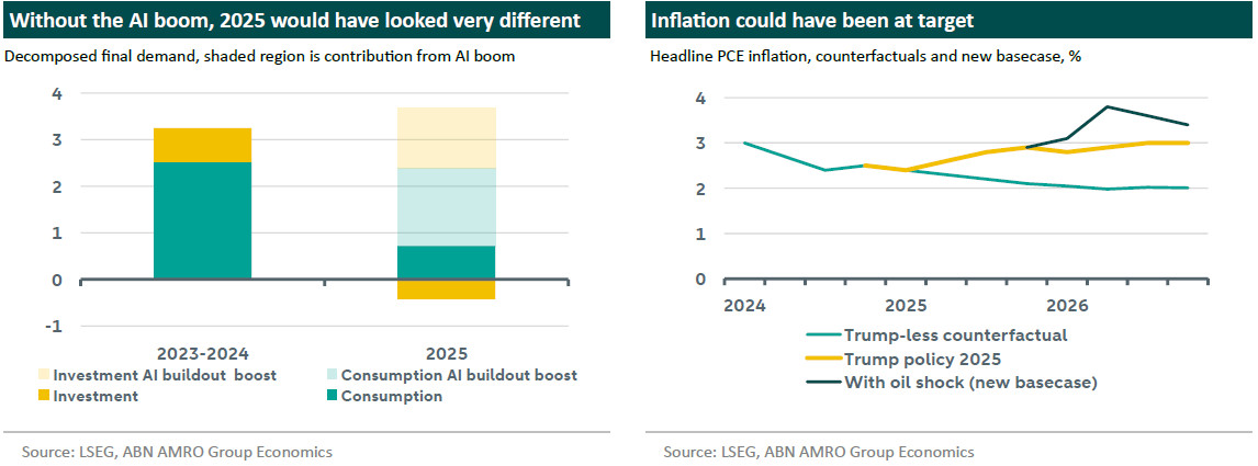 Outside direct and indirect effects of the AI boom, the US economy grew at near stall speed in 2025. Low labour supply growth led to near-zero job creation, but also prevented unemployment from rising. With tariff inflation yet to dissipate, the Iran conflict generates another policy-induced inflation shock.
