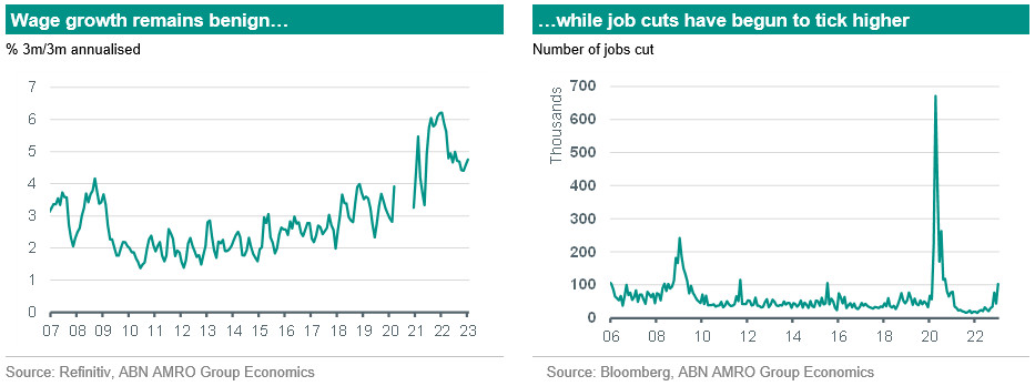 All told, the labour market has been even stronger than previously estimated. At the same time, wage growth has continued the benign trend of recent months, with hourly earnings rising again at a 0.3% m/m pace, which drove a further decline in annual earnings growth to 4.4% y/y from 4.8% in December.