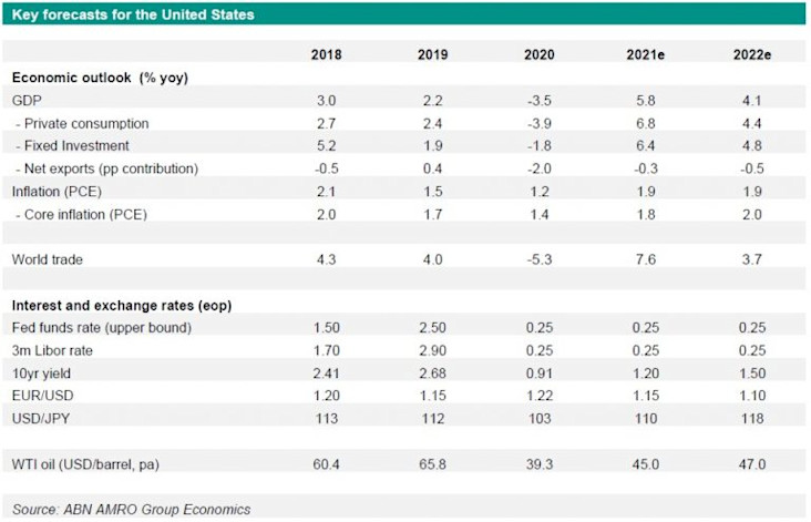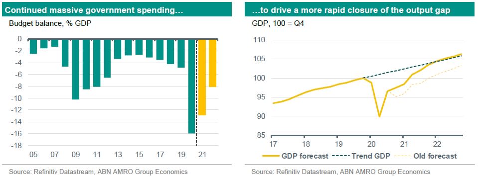 In its response to the covid-19 pandemic, the US has stood out from two angles: 1) from a public health standpoint, the US has been among the hardest hit; and 2) it is surprising therefore that the economic fallout has been comparatively shallow – the economy contracted by 3.5% in 2020, among the least in the developed world. We see three main reasons for this. First, the initial lockdowns in March and April were not as strict as those seen elsewhere. Second, fiscal and monetary support for the economy has been among the most bold and aggressive seen globally. Third, state governments have been much more reluctant to join European countries in imposing new lockdowns in response to the second and third waves of the pandemic in the latter half of 2020. Following a more shallow 2020 recession, the US also looks set to outperform in the vaccine-powered recovery of 2021. Newly-elected President Biden’s slim Senate majority, combined with prolonged easy monetary policy, gifts him significant power to spend aggressively to support the recovery over the coming years. As a result, we have significantly raised our growth forecasts, and expect a much more rapid closure of the output gap than we did previously.