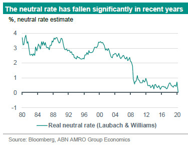 A further (related) motive for the changes is to reduce the proximity to the effective lower bound in good times, by raising the nominal neutral rate of interest, or r-star (see our note from 2018 on this topic). This effect is arguably less important than the boost to inflation expectations, as it would likely only add around 60bp of policy space at most. To illustrate: the current real neutral rate of interest is currently estimated according to the Laubach & Williams methodology to be around zero in the US. The nominal neutral rate of interest is therefore zero + inflation. If inflation rises from its post-2012 average of 1.4% to 2.0%, that implies an extra 60bp of policy space. This is significant, but by no means a game changer given that the Fed has typically needed to cut rates by 4-5 percentage points in previous downturns. With global factors the primary driver of low real neutral rates, so-called ‘unconventional’ monetary policy looks to be here to stay for some years to come