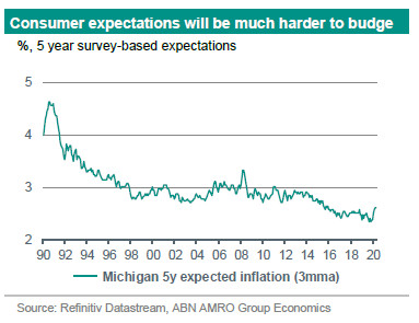 Should the Fed succeed in achieving inflation that averages 2%, this should by itself return inflation expectations to a level consistent with 2% inflation. This change would therefore fix a critical ‘bug’ in the Fed’s previous framework. Higher inflation expectations would also reduce the risk of deflation in a future downturn.