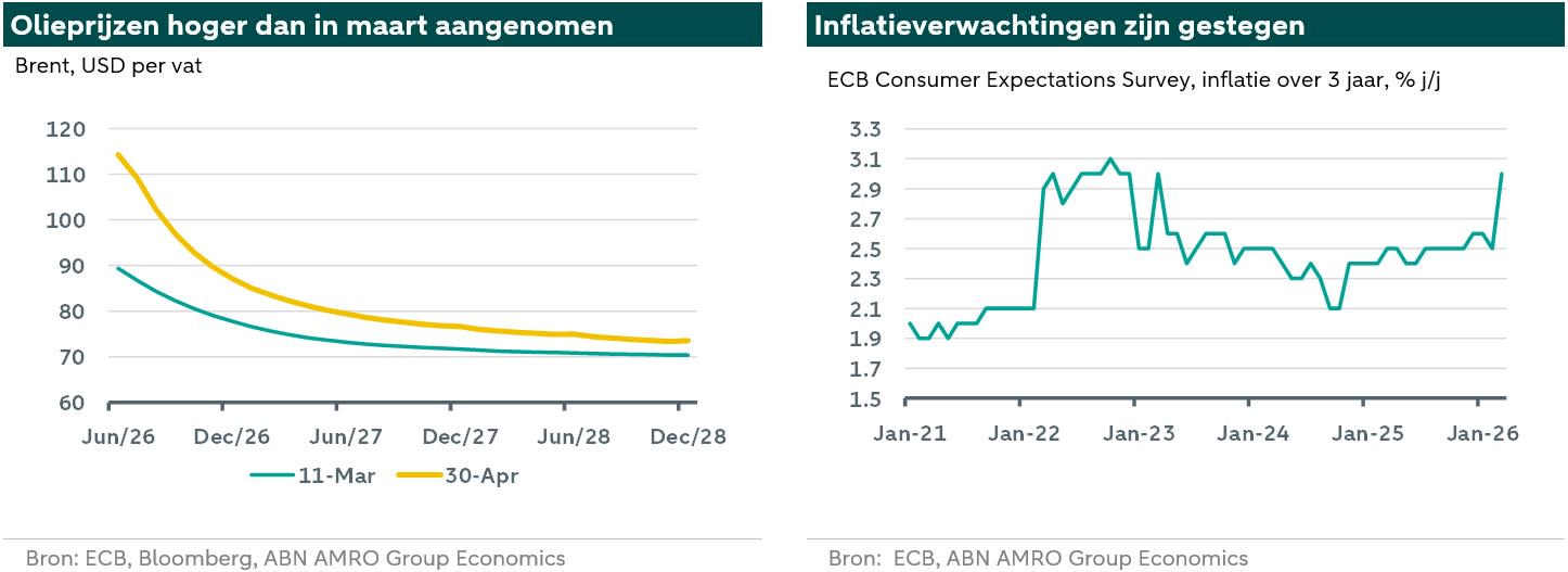 De communicatie van de ECB maakt duidelijk dat er een renteverhoging in het verschiet ligt in juni. De opwaartse inflatierisico's zijn volgens de ECB toegenomen. Wij verwachten renteverhogingen bij de komende twee beleidsvergaderingen waardoor de depositorente stijgt tot 2,5%.