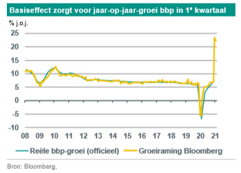 Nationaal Volkscongres: harde groeinorm verliest aan belang, meer ruimte voor kwaliteitsgroei. Jaargroeicijfers in eerste kwartaal sterk beïnvloed door basiseffect van covid-19-schok. Stimulus via de begroting wordt teruggedraaid, maar geleidelijk. Monetair beleid: meer nadruk op beheersen risico’s, gerichte steun voor MKB.Sterke uitvoergroei draagt bij aan logistieke knelpunten; tarieven containervervoer weer omlaag.