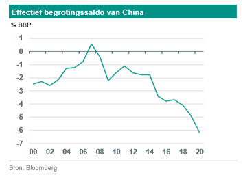 Een wat conservatiever begrotingsbeleid komt ook tot uiting in wat lagere quota voor de uitgifte van speciale obligaties door lokale overheden (van 3,75 biljoen RMB naar 3,65 biljoen RMB), hoewel er nog ongeveer 150 miljard RMB aan uitgifte overblijft van vorig jaar. Bovendien mogen lokale overheden een deel van de opbrengsten die vorig jaar niet zijn aangewend, dit jaar gebruiken om uitgaven te doen. Ook rekening houdend met deze speciale lokale overheids-obligaties, LGFV-obligaties, steun van beleidsbanken enzovoort, zal het begrotingsbeleid dus nog iets meer worden verkrapt. Toch verwachten wij niet dat Beijing doorschiet met bezuinigen, omdat de autoriteiten de bereikte economische stabilisatie niet in gevaar zullen willen brengen.