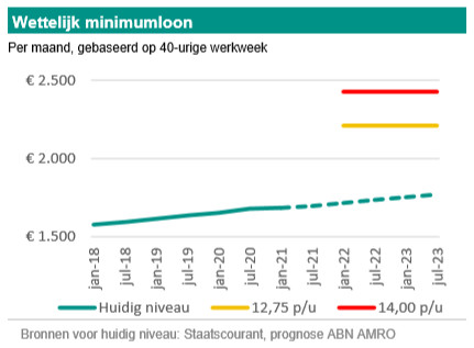 Deze week werd bekend dat er een in voorbereiding is, met steun van de twee grootste fracties in het Europees Parlement. Dit is sneller gegaan dan verwacht. Er wordt een minimumloon voorgesteld dat per lidstaat minimaal 60 procent van het mediane loon en 50 procent van het gemiddelde loon is. Dit betekent voor Nederland niet een minimumloon van rond de € 12,75 per uur zoals we eerder verwachtten, maar richting de € 14,00 per uur. Wel moet daarbij opgemerkt worden dat Nederland in het verleden vaak langzaam is geweest met het implementeren van Europese richtlijnen op sociaaleconomisch vlak (zoals het vaderschapsverlof). Het zou dus best kunnen dat het nog jaren duurt voordat er een minimumloon van € 14,00 per uur is. Het nieuwe regeerakkoord biedt waarschijnlijk meer zicht op het tempo.