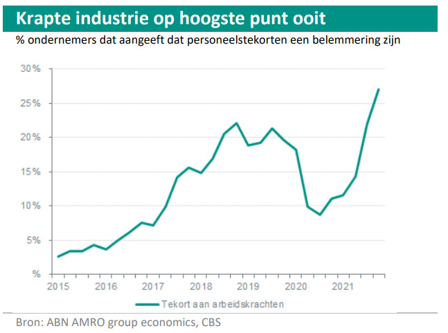 In de industrie heeft de krapte wel effect op de lonen. Inflatie kan tot ver in 2022 sterk beinvloed worden door energieprijzen. Cijfers en uitdagingen voor innovatie van Nederlandse bedrijven