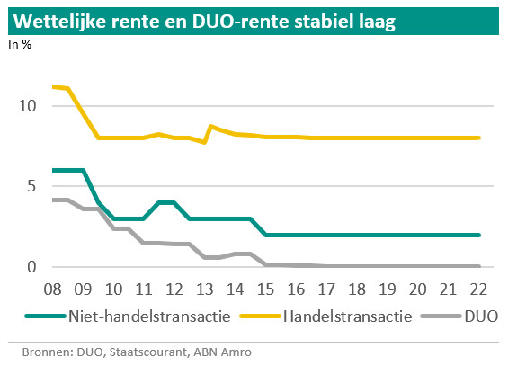 Beide tarieven van de wettelijke rente daalden vanaf 2008 en bleven sinds 2017 gelijk. Dat geldt ook voor de rente op studieschuld. Die was eerst gekoppeld aan de rente op staatsschuld met een resterende looptijd van 3 tot 5 jaar. Nu is dat, voor studenten die na 2020 aan hun studie beginnen, de rente op 10-jarige staatsschuld. De rente op staatsschuld is al langere tijd laag, net als het ECB-herfinancieringstarief waar de wettelijke rente op is gebaseerd.