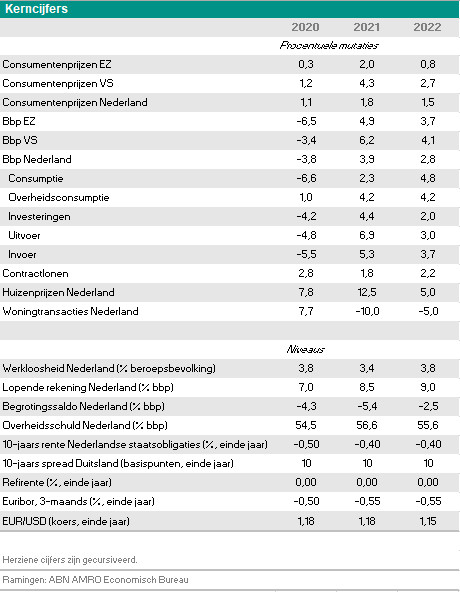 Wij hebben onze inflatieverwachtingen iets naar boven bijgesteld, naar 1,6% in 2022. Dit komt door de hogere energieprijzen (met name gas) en het feit dat de knelpunten in de aanbodzijde waarschijnlijk nog een gedeelte van 2022 van kracht blijven.