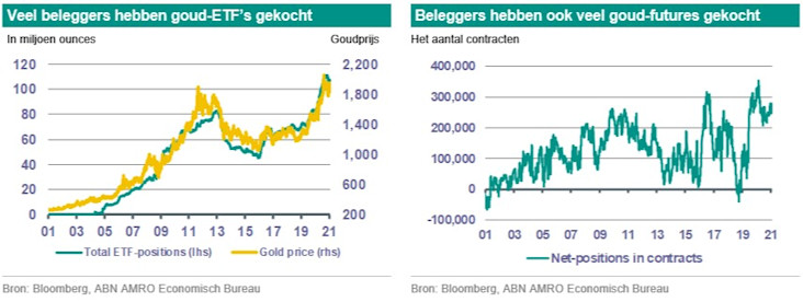Ten derde verwachten we dat de dollar gematigd zal stijgen in plaats van dalen (zie FX weekly). Een sterkere dollar is over het algemeen negatief voor de vooruitzichten van de goudprijs (zie de rechter grafiek op de volgende pagina).