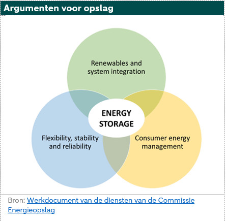 Energieopslagtechnologieën kunnen ook snel worden uitgerold wanneer het juiste beleid en de juiste stimulansen aanwezig zijn. Dit maakt ze tot een nuttig instrument op korte termijn om de energiezekerheid te verbeteren en de REPowerEU-doelstellingen van de EU te halen. Zo kunnen stand-alone batterijprojecten in minder dan een jaar worden gebouwd en kunnen batterijsystemen achter de meter in slechts enkele dagen worden geïnstalleerd. Achter de meter betekent dat een batterij, zonnepanelen of een ander energiesysteem bij de gebruiker zelf staat en daarmee dus achter de elektriciteitsmeter is aangesloten. Het is het deel van de installatie dat niet direct zichtbaar is voor het openbare elektriciteitsnet. De energie hoeft niet het volle net op en ontlast het elektriciteitsnet. Deze oplossingen om energie op te staan ondersteunen zowel energie-efficiëntie als vraagrespons (zie voor meer informatie).