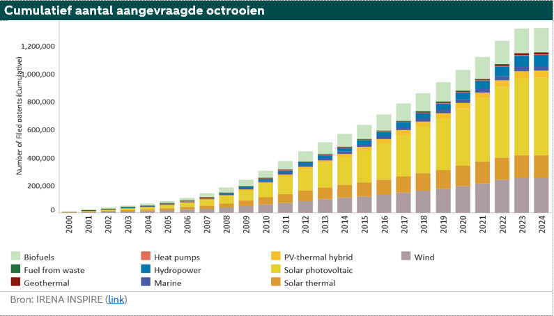 Door schaalvoordelen is het mogelijk geworden om duurzame‑energie‑voorzieningen op grote schaal te bouwen. De kosten per eenheid zijn gedaald naarmate de productievolumes zijn toegenomen. Vooruitgang in productieprocessen voor het maken van koolstofarme technologieën, zoals automatisering en verbeterde assemblagetechnieken, hebben de kosten verder verlaagd en de efficiëntie verbeterd, waardoor hernieuwbare energiebronnen concurrerender zijn geworden ten opzichte van traditionele energiebronnen. Ondertussen hebben voortdurende innovaties op het gebied van materialen – zoals efficiëntere zonnecellen en lichtere, duurzamere windturbinebladen – en vooruitgang op het gebied van ontwerp de energieopbrengst per capaciteitseenheid aanzienlijk verbeterd. Deze ontwikkelingen worden ondersteund door een stijging van het aantal octrooien in bijna alle technologieën (zie hieronder), wat een weerspiegeling is van de toegenomen inspanningen op het gebied van onderzoek en ontwikkeling en technologische doorbraken.