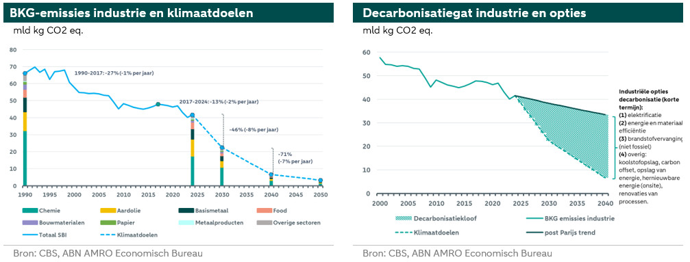 Elk onderdeel van de Nederlandse economie heeft een rol in het halen van de klimaatdoelen. In de ene sector is dat meer dan in de andere sector. Binnen veel sectoren van de Nederlandse economie is in ieder geval de transitie naar een koolstofarme of –vrije manier van werken inmiddels in volle gang. Het 2030-doel (55% emissiereductie t.o.v. het niveau van 1990) is slechts voor een klein aantal sectoren gehaald of binnen handbereik. De sectoren die verantwoordelijk zijn de meeste uitstoot van broeikasgassen (BKG), staan echter nog voor een relatief grote klimaatuitdaging om hun processen en producten koolstofarm te maken. Dit zijn de energie-intensieve sectoren, zoals de chemische industrie, de voedingsmiddelenindustrie, de papierindustrie, de olie-industrie en de basismetaalindustrie. De transitie is in deze sectoren vaak veel complexer en kent nog veel obstakels. Ook de bouwmaterialenindustrie is een energie-intensieve sector, maar de klimaatopgave voor deze sector is momenteel lager dan de andere energie-intensieve sectoren.