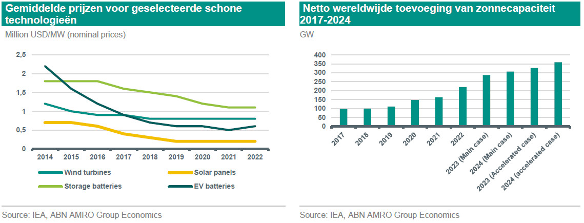 De recente kostenreductie in zonne- en windenergietechnologieën heeft een impuls gegeven aan moderne energiesystemen. Volgens het International Renewable Energy Agency (IRENA) zijn de prijzen van zon-PV-modules sinds 2009 met 90% gedaald, samen met de lagere kosten van batterijen, zoals te zien is in de grafiek aan de linkerkant hieronder. Dit heeft het gebruik van zon-PV gestimuleerd, zoals te zien is in het rechterpaneel van onderstaande figuur.