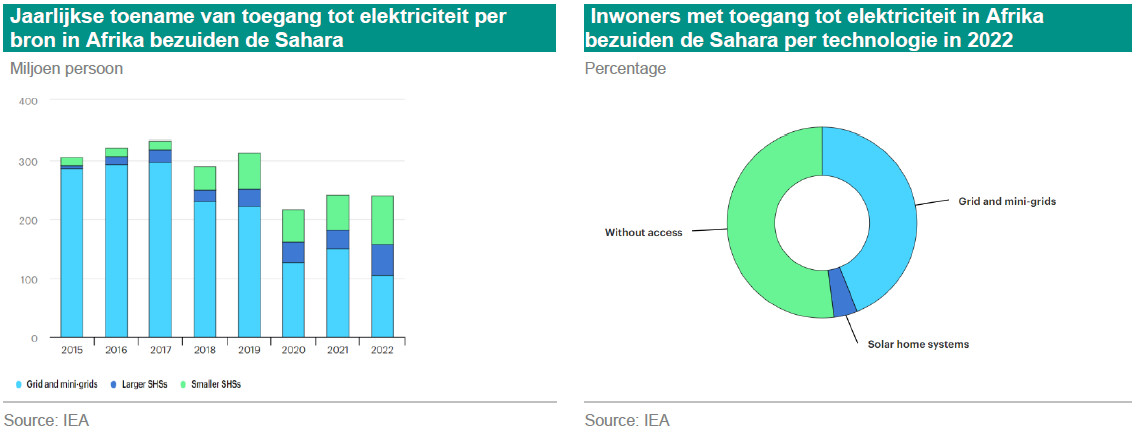 Volgens een schatting van het IEA bieden Solar Home Systems (SHS) toegang tot elektriciteit aan 4% van de Afrikaanse huishoudens. Microgrids in Afrika ten zuiden van de Sahara bieden toegang aan ongeveer 2% van de bevolking, terwijl hoofdnetten toegang bieden aan meer dan 40%. De resterende 54% heeft geen toegang tot elektriciteit, zoals te zien is in de onderstaande figuur (zie voor meer informatie). Microgrids spelen ook een rol in het verminderen van energiearmoede door betaalbare en betrouwbare stroom te leveren aan mensen met lagere inkomensniveaus. Dit is met name het geval omdat SHS een beperkte impact hebben op inclusiviteit en de sociaaleconomische ontwikkeling niet bevorderen.