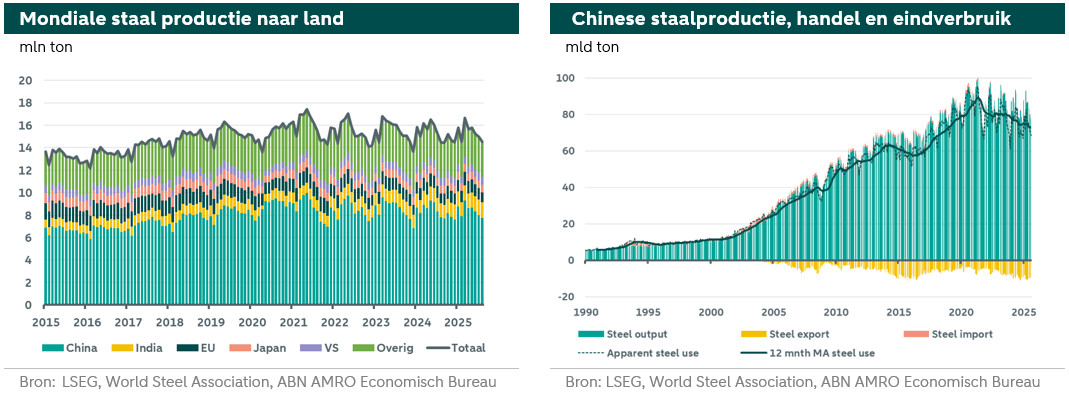 Dit jaar is de export van staal (tot en met augustus) met 3% toegenomen. De jaarlijkse toename in de export van Chinees zet grote druk op de staalbedrijven buiten China. Het overtollige Chinese staal wordt namelijk tegen relatief lage prijzen weggezet op internationale markten. Ongeveer 10% van de Chinese staalexport vindt haar eindbestemming in Europa. Om de ‘strategisch belangrijke’ Europese staalindustrie te beschermen tegen dumping vanuit China, heeft de EU onlangs nieuwe maatregelen aangekondigd. Zo wordt de hoeveelheid heffingsvrij importstaal met bijna de helft verlaagd en is een verdubbeling van de importheffing voorgesteld op alle niet-heffingsvrij importstaal. Het uiteindelijke doel van dit plan is om de bezettingsgraad van de Europese staalindustrie weer op 85% te krijgen, welke volgens Eurofer – de Europese belangenorganisatie van de staalindustrie – momenteel rond de 65% ligt. Additioneel aan deze importheffing gaat bovendien binnen een drietal maanden een heffing op het koolstofgehalte gelden voor de import van staal. Begin 2026 treedt de ‘Carbon Border Adjustment Mechanism’ (CBAM) in werking. Met dit milieubeleidsinitiatief moeten EU importeurs die CBAM-goederen invoeren – waaronder staal – een prijs betalen voor de CO2-uitstoot die is vrijgekomen bij de productie van die goederen. In ieder geval zullen beide importmaatregelen een positieve uitwerking hebben op de EU-staalsector. Veel eindgebuikers van staal zullen echter minder enthousiast zijn, aangezien zij vanaf volgend jaar hun staal hoogstwaarschijnlijk duurder moeten inkopen.