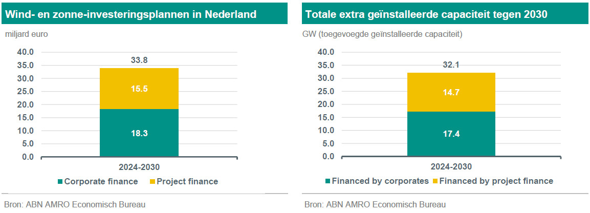 Over het geheel genomen geeft onze analyse aan dat tussen 2024-2030 naar verwachting 33 miljard euro zal worden geïnvesteerd via bedrijfs- en projectfinanciering.