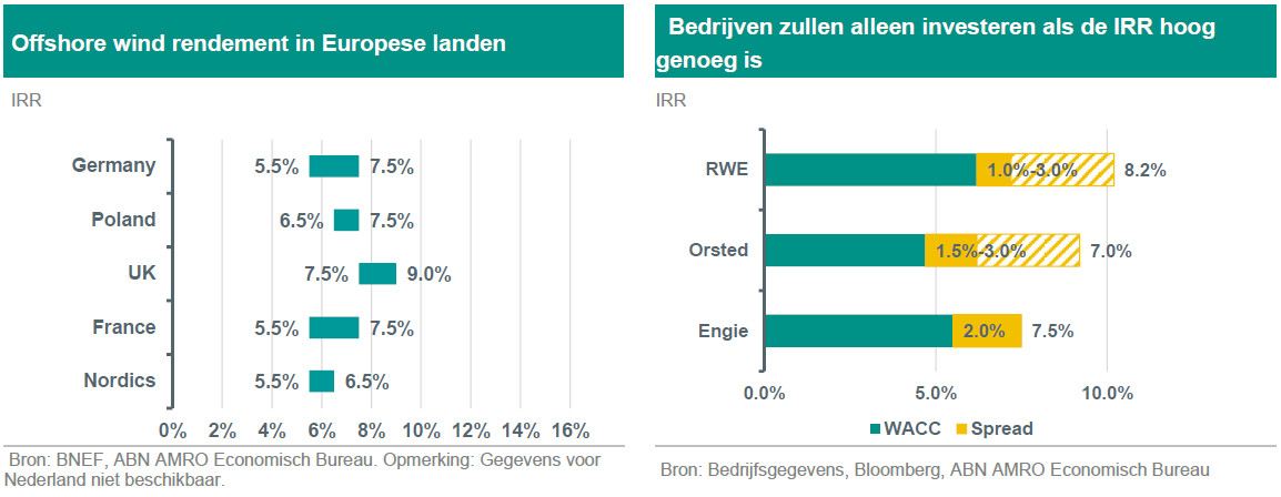 We nemen subsidies niet direct mee in deze berekeningen, omdat de Nederlandse overheid exploitatiesubsidies verstrekt die fungeren als bodemprijs voor energieprijzen, wat uiteindelijk betekent dat de overheid meer optreedt als facilitator dan als directe investeerder.