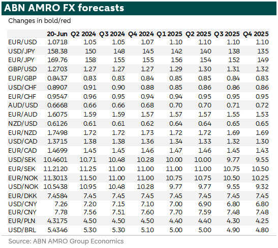 Vandaag liet de Bank of England de beleidsrente op 5,25% staan. Wij en de consensusverwachtingen gingen uit van geen verandering. In onze FX weekly van vorige week hebben we ons gericht op de verkiezingen in het VK, de vooruitzichten voor de economie, de Bank of England en het Britse pond. We houden nog steeds rekening met een renteverlaging in augustus.