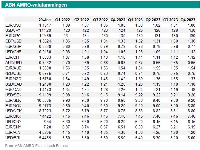 De comeback van de Amerikaanse dollar. Beleggers zijn erg gefocust op de eerste renteverhoging door de Fed dit kwartaal (wij verwachten een verhoging met 25bp in maart). Maar er zijn meer centrale banken die mogelijk binnenkort de rente verhogen en dat geeft de munten mogelijk steun.