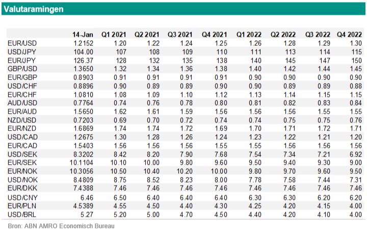 Ten tweede is het is niet waarschijnlijk dat de Norges Bank het monetair beleid verder zal verruimen. De beleidsrente staat nu op 0%. Op 17 december gaf Norges Bank aan dat de beleidsrente op het huidige niveau blijft tot het moment dat de economische situatie zich normaliseert. De ramingen van de centrale bank laten zien dat de beleidsrente mogelijk in 2022 gematigd kan stijgen. Dit is veel sneller dan de meeste andere centrale banken. Dit biedt steun aan de Noorse kroon. Ten derde verwachten we dat beleggers redelijk optimistisch blijven. Dit is positief voor een valuta zoals de kroon. Tot slot is de kroon zwaar ondergewaardeerd ten opzichte van de dollar en de euro. De kroon is 18% ondergewaardeerd ten opzichte van de euro. Dit is op basis van koopkrachtpariteit.