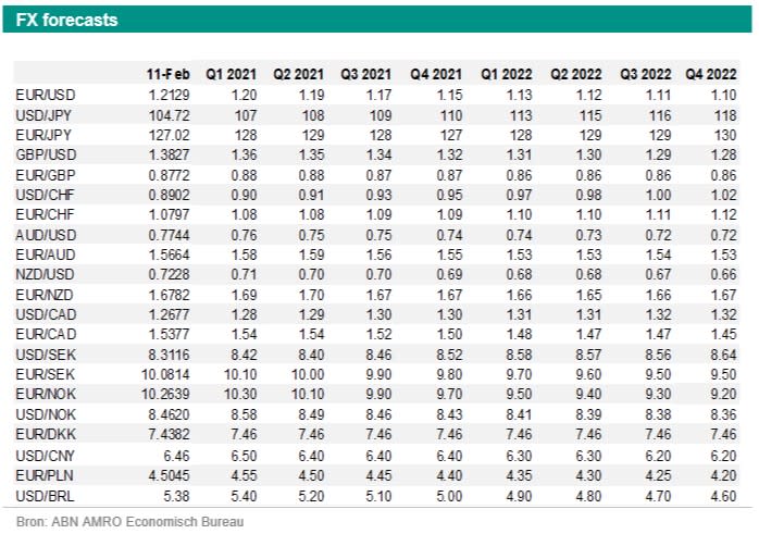 De drijvende factoren van de Amerikaanse dollar zijn veranderd. Vorig jaar daalde de dollar omdat er weinig vraag was naar veiligehavenmunten en omdat beleggers bezorgd waren over het groter wordende begrotingstekort, de zwakke economie en een verruimingsgezinde Fed. Dus beleggers meden de dollar toen ze optimistisch waren. Zo begon 2021 ook. De drijvende factoren van de dollar veranderden echter. Beleggers kregen weer meer interesse in de dollar, omdat de vooruitzichten voor de Amerikaanse economie verbeterden. Daarnaast blijft de Fed mogelijk minder lang verruimingsgezind dan eerder werd aangenomen. Kortom een goede reden om de dollar weer eens te kopen. As gevolg hiervan steeg de dollar, ook ten opzichte van de euro. EUR/USD daalde onder het niveau van 1,20. Maar de daling stopte rond het niveau van 1,1950, wat ook een belangrijk steunniveau was. Sindsdien is de dollar licht gedaald. We denken dat dit tijdelijk van aard is. De dollar gaat mogelijk snel weer stijgen.