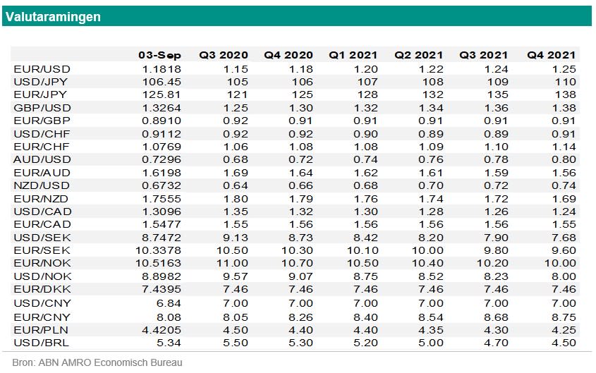 Ten tweede was de Amerikaanse inkoopmanagersindex beter dan verwacht en dit gaf de dollar een duwtje in de rug. We denken dat het beleggerssentiment ten opzichte van de dollar wat verbetert. Maar beleggers houden de peilingen over de Amerikaanse presidentsverkiezingen ook nauw in de gaten. Als de marge tussen de presidentskandidaten Biden en Trump kleiner wordt, dan is er meer onzekerheid over de verkiezingsuitslag in november. Dit kan het herstel van de dollar beperken.
