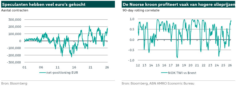 Wij denken dat verwachtingen van hogere inflatie en minder renteverlagingen door de Amerikaanse centrale bank de dollar sterker hebben gemaakt. De euro heeft waarde verloren ten opzichte van valuta’s van landen die olie en gas exporteren, omdat deze landen waarschijnlijk profiteren van hogere olie- en gasprijzen. De Noorse kroon steeg gisteren maar verloor vandaag weer terrein.