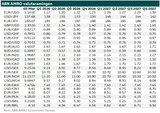 Over het weekend voerden de VS en Israël luchtaanvallen uit op Iran. Iran reageerde met aanvallen in de hele regio en de scheepvaart door de Straat van Hormuz kwam vrijwel tot stilstand. De militaire escalatie in het Midden-Oosten betekent opnieuw een toename van geopolitieke risico’s voor de economie en financiële markten. De belangrijkste transmissiekanalen zijn verstoringen van de energievoorziening en toenemende onzekerheid. Omdat er veel onzekerheid is over wat er nu gaat gebeuren, proberen we wat meer inzicht te geven in de ontwikkelingen op de valutamarkten en de vooruitzichten.