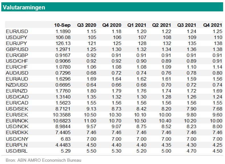 Het belangrijkste is of beide partijen bereid zijn om tot een handelsovereenkomst te komen. Mochten het VK en de EU niet tot een handelsovereenkomst komen, dan daalt het pond waarschijnlijk aanzienlijk. We verwachten dan een grotere daling van het pond ten opzichte van de dollar dan ten opzichte van de euro. Geen handelsovereenkomst is namelijk ook slecht voor de euro. GBP/USD kan dan dalen onder 1,20 en EUR/GBP stijgt mogelijk naar 0,95.