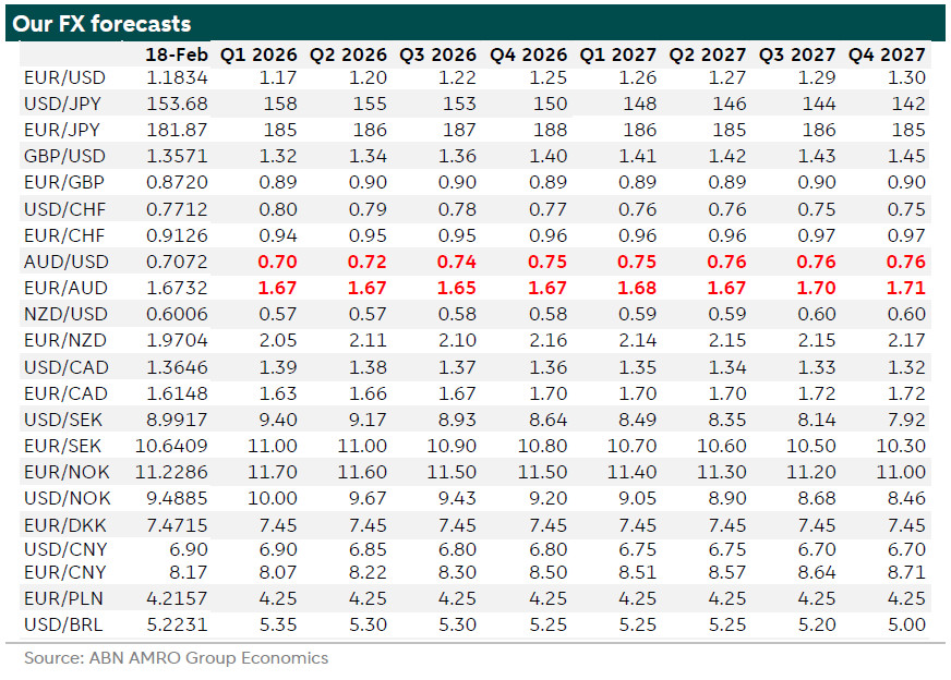 Op 3 februari verhoogde de RBA de rente met 25 basispunten tot 3,85%, vanwege aanhoudende inflatie: in het vierder kwartaal van 2025 bedroeg de headline-inflatie 3,6% j-o-j en de onderliggende inflatie 3,4%, beide boven het doel van 2,5%. De centrale bank verwacht dat de inflatie langer boven het doel blijft. Hogere beleidsrentes heeft de Australische dollar ten opzichte van veel andere valuta gesteund.