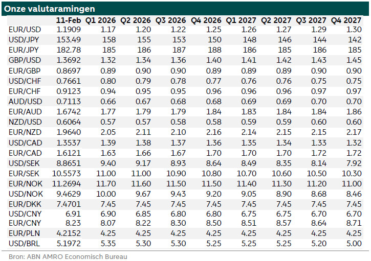 Op 27 januari steeg de waarde van de euro tegenover de dollar snel naar 1,2081. Nadat bekend werd dat Kevin Warsh de nieuwe voorzitter van de Amerikaanse Federal Reserve zou worden, werd de dollar sterker en daalde EUR/USD tot net onder 1,1770 op 6 februari. Sindsdien is de dollar weer zwakker geworden.