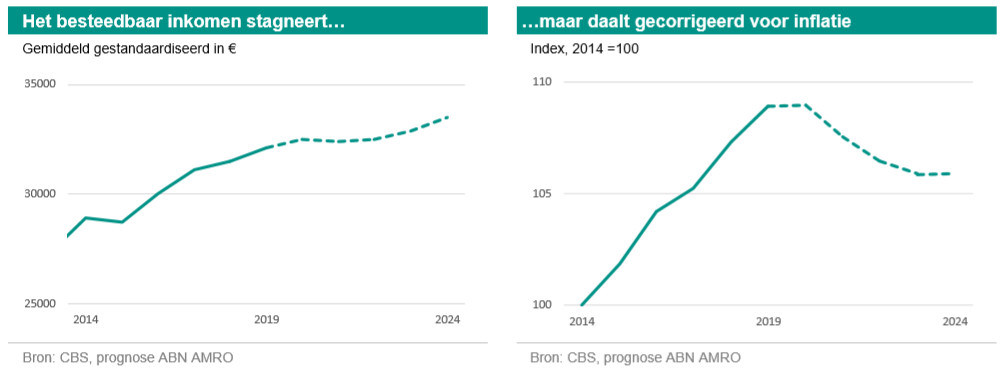 Het reëel besteedbaar inkomen daalt in 2021 en 2022