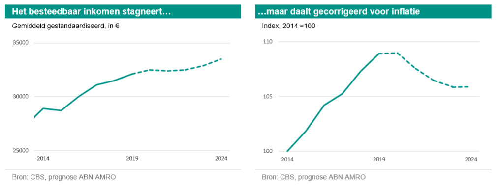 Het reëel besteedbaar inkomen daalt in 2021 en 2022