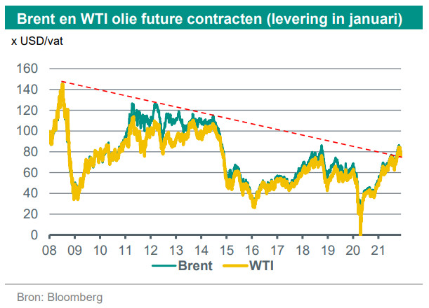 In de VS is de druk op president Joe Biden hoog omdat veelburgers/kiezers hem de, voor Amerikaanse begrippen, erg hoge benzineprijs aanrekenen. Eerdere verzoeken richting OPEC+ – de coalitie tussen diverse OPEC-leden en andere olieproducenten onder leiding van Rusland – om de productie sneller dan gepland te verhogen werden afgewezen. De OPEC+-leden wezen op de onzekerheden in de markt, zoals afnemende vraag als gevolg van nieuwe lockdowns, en op hun verwachting dat de vraag/aanbodbalans sowieso in het eerste kwartaal van 2022 beter in balans zou komen. Desalniettemin hebben de VS en partners de handen ineengeslagen en besloten tot het eenmalig uitlenen van extra vaten olie om de huidige onbalans op te heffen en olieprijzen verder te laten dalen.