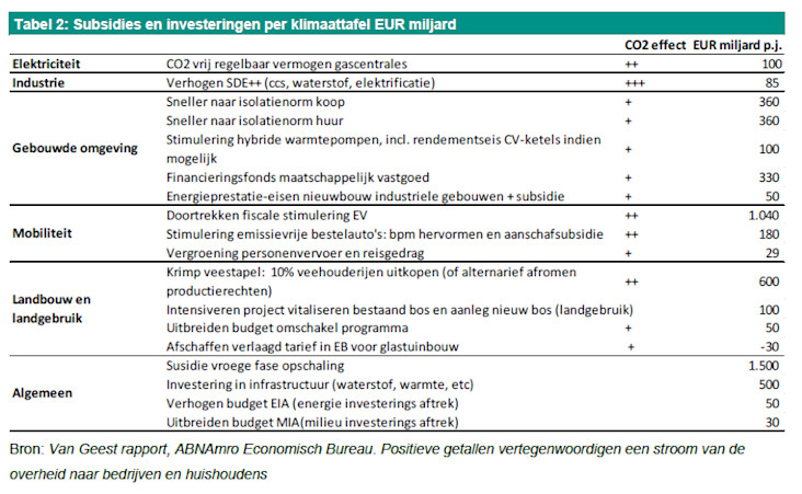 Als de klimaatagenda volledig gefinancierd zou worden binnen de huidige budgettaire grenzen, geeft de door Van Geest voorgestelde bandbreedte ons een voorbode voor komend aanvullend beleid. Voor belastingen zou dit vooral betekenen: