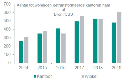 Verder zetten politieke partijen in op transformatie van winkels en kantoren. Tijdens de pandemie is thuis werken en online winkelen in een stroomversnelling gekomen. Een verschuiving die waarschijnlijk structureel is. Dit betekent dat er kantoor- en winkelruimtes vrij komen die kunnen worden getransformeerd. Dit zal extra woningen opleveren, onder meer voor de al dan niet tijdelijke huisvesting van specifieke doelgroepen zoals studenten en statushouders, en biedt kansen om de leefbaarheid van sommige buurten te verbeteren.