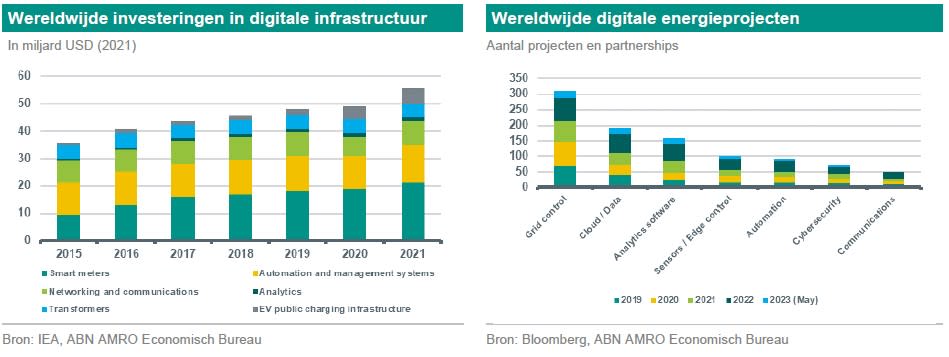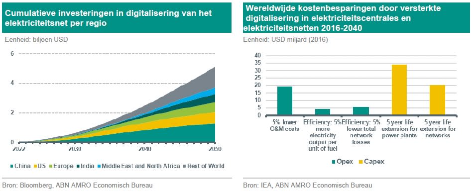 Volgens het IEA is er tot 2030 jaarlijks gemiddeld 600 miljard USD aan investeringen in elektriciteitsnetten nodig om op koers te blijven met Net Zero emissies in 2050. Dit betekent een verdubbeling van de huidige investeringen in slimme netwerken. Bloomberg schat de totale investeringen in digitalisering tot 2050 op USD 5,1 biljoen, waarvan 30% wordt besteed aan netbeheer.