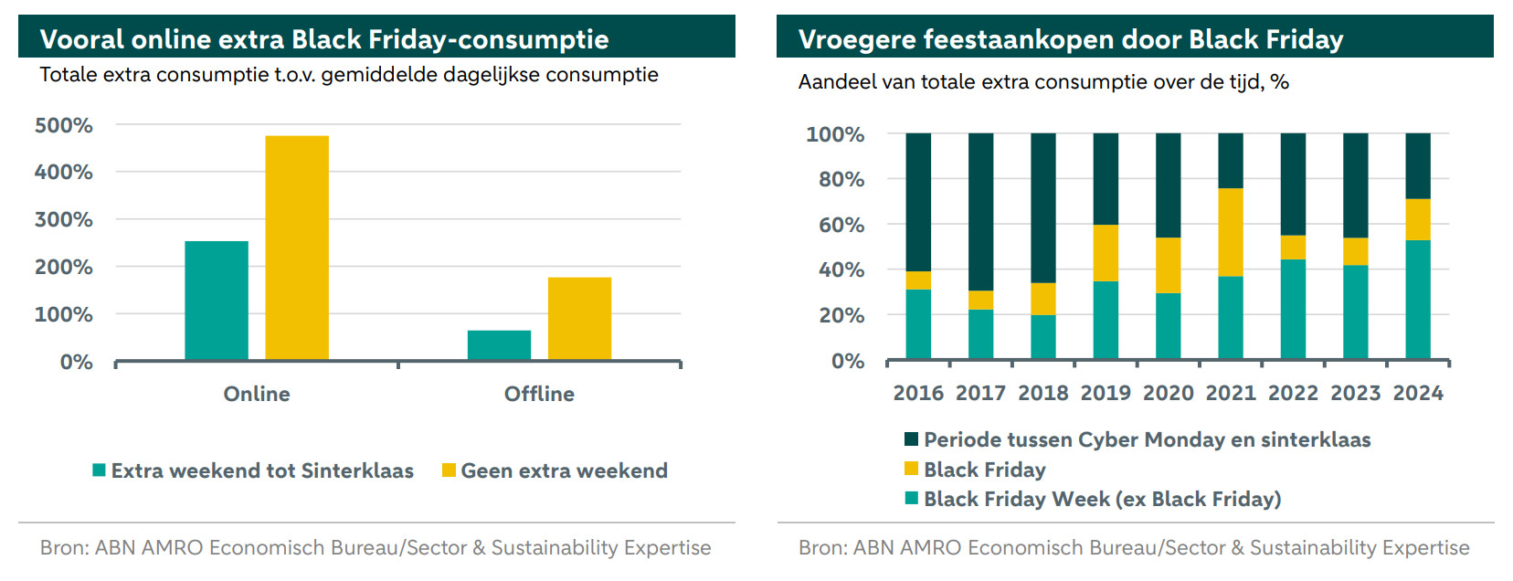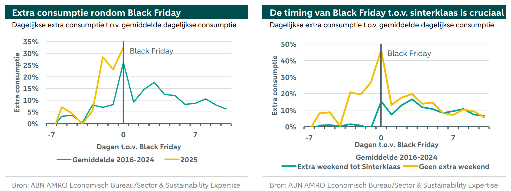 De Black Friday-periode wordt door veel Nederlanders benut om aankopen te doen, vaak met het oog op sinterklaas en kerst. In deze periode geven consumenten aanzienlijk meer uit dan in het verleden, toen de dagen rond sinterklaas nog echte aankoopdagen waren. Om piekdrukte te voorkomen, starten meer retailers steeds eerder in november met het doen van aanbiedingen, waarbij de klant vooral via internet wordt gelokt.