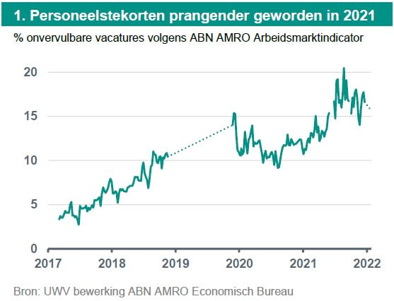 In de zomer van 2020 ging de economie weer open en bleef de krapte op de arbeidsmarkt aanwezig, ondanks dat de samenleving sindsdien met meerdere oplevingen van het virus en diverse restricties werd geconfronteerd. In november 2021 leek een kentering zichtbaar die vooral kan worden verklaard uit een afnemend aantal vacatures, mogelijk door de toen toenemende onzekerheid over het verloop van de coronacrisis. Maar inmiddels zijn de tekorten weer opgelopen, ondanks dat het aantal vacatures behoorlijk lager lijkt te liggen dan in november.