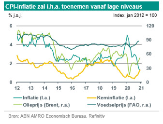 Wij verwachten dat de inflatie in 2021 wat zal toenemen vanaf huidige lage niveaus
