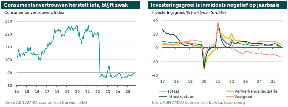 Al met al blijven de macro-onevenwichtigheden groot, waarbij de aanbodzijde nog steeds sterker is dan de vraagzijde, terwijl de deflatiedruk nog niet voorbij is (de kerninflatie trekt weliswaar aan, maar blijft vrij laag). Deze onevenwichtig-heden zijn het gevolg van het groeimodel van de afgelopen jaren. Dit model geeft prioriteit aan de ondersteuning van hightech-industrie en technologische zelfredzaamheid, deels als reactie op het strengere Amerikaanse handels- en technologiebeleid, boven het verhogen van de consumptie. Dit alles heeft ruimte gecreëerd voor de export, terwijl inflatie- en valutabewegingen de externe concurrentiekracht ondersteunen. De overheidscampagne tegen excessieve concurrentie heeft hierin weinig verandering gebracht. Nu de wereldwijde kritiek op China’s onevenwichtigheden toeneemt, rijst de vraag hoe duurzaam dit extern gedreven groeimodel nog is. De uitvoercijfers voor oktober zijn in dat opzicht een waarschuwingssignaal. Ook het IMF heeft Beijing onlangs opnieuw opgeroepen de onevenwichtigheden te verminderen. Gezien de aanhoudende spanningen met de VS en het Westen, gaan wij ervan uit dat Beijing volgend jaar zijn focus op technologische ontwikkeling niet zal loslaten. Toch, mede op basis van wat tot nu toe naar buiten is gekomen over het 15e Vijfjarenplan (2026-2030), lijkt het erop dat de overheid wat meer urgentie voelt om de tekortkomingen van China’s model aan te pakken, en de inspanningen zal opvoeren om huishoudinkomens, de consumptie en de bredere binnenlandse vraag te ondersteunen.