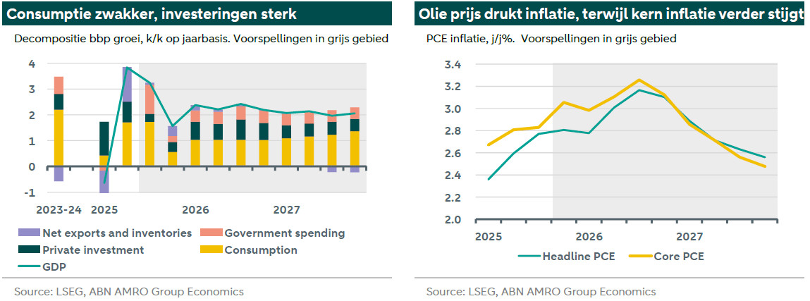 De VS is een verhaal van twee economieën geworden: AI bloeit, de rest stagneert. Handels- en immigratiebeleid zullen de kloof verder vergroten. AI-investeringen, en fiscale en monetaire verruiming zullen de groei stimuleren, ten koste van tekorten en inflatie.
