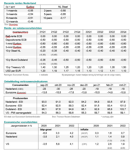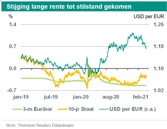 Tijdens de beleidsvergadering van maart heeft de ECB besloten het tempo van de obligatieaankopen flink te gaan opvoeren. De centrale bank was immers niet tevreden over de stijging van de lange rente die in de maanden daarvóór had plaatsgevonden. Deze stijging was vooral tot stand gekomen door gebeurtenissen in de VS en een stijging van de inflatie in de eurozone, die echter tijdelijk zal zijn.