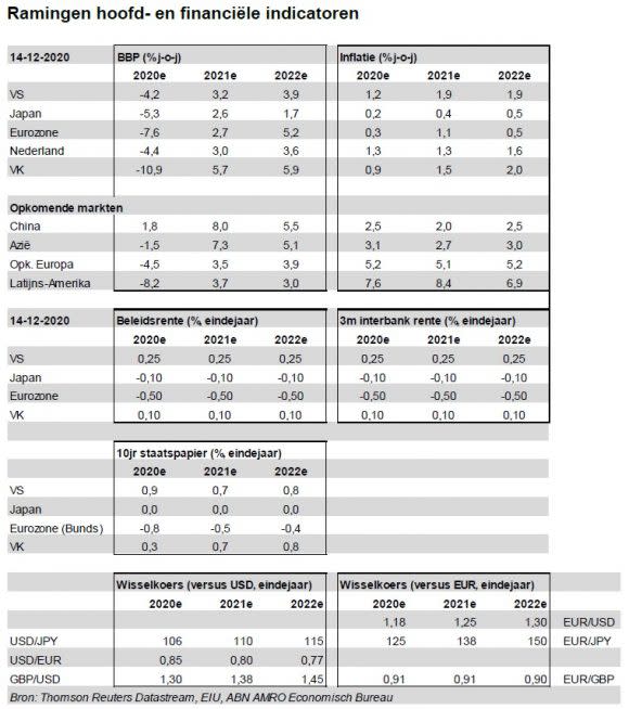 Deze global outlook schetst ons basisscenario voor 2021 en 2022. Dit neemt niet weg dat in deze extreme economische omstandigheden ook andere scenario’s mogelijk zijn (zie hier voor ons positief en negatief scenario). Ook zijn er niet-pandemie gerelateerde ontwikkelingen zoals de brexit en de allesbehalve opgeloste handelsspanningen tussen de VS en China. Voorafgaand aan deze pandemie domineerden deze ontwikkelingen onze vooruitzichten. Vanwege de alles overstijgende invloed van de pandemie op de economie hebben we in deze global outlook niet expliciet aandacht aan deze ontwikkelingen besteed. Onze brexit verwachtingen zijn hier te vinden en worden ook de komende weken ge-update. Uiteraard zijn de economische gevolgen van de brexit meegewogen in onze ramingen.