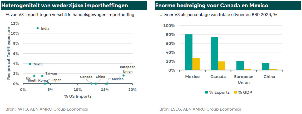 Een maand na de inauguratie van Trump is de onzekerheid over het handelsbeleid alleen maar toegenomen, met bredere, onduidelijke , chaotische onderhandelingen, en het terugkrabbelen en uitstellen van voorstellen. Op basis van de huidige voorstellen zijn Canada en Mexico het meest kwetsbaar. De voorgestelde importheffing van 25% zou ook een aanzienlijk negatief effect hebben op de VS. Wederkerige importheffingen zijn waarschijnlijk minder schadelijk voor de VS in vergelijking met de eerder voorgestelde universele importheffing, maar een gebrek aan een duidelijke definitie of bovengrens voor de importheffingen zorgt voor grote onzekerheid over de mogelijke impact.