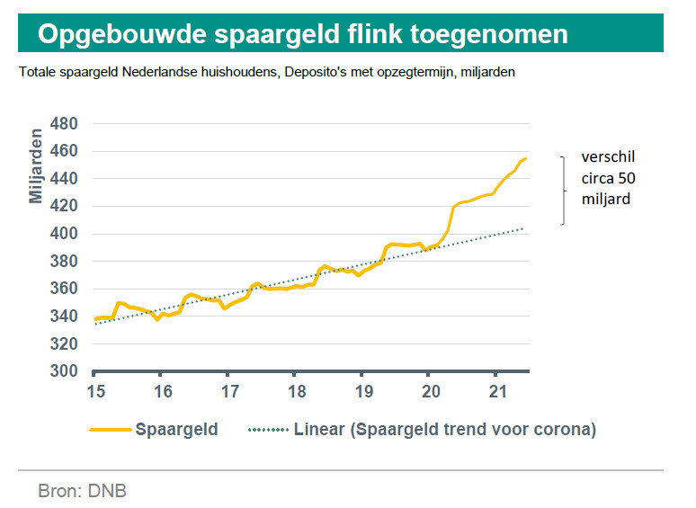 Maar ook het overtollige spaargeld zal niet leiden tot substantiële hogere inflatie